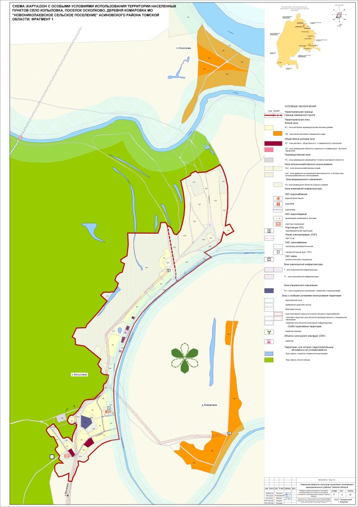 Схема зон с особыми условиями использования территории населенных пунктов село Копыловка, поселок Осколково, деревня Комаровка МО «Новониколаевское сельское поселение» Асиновского района Томской области (jpg, 145 kb)
