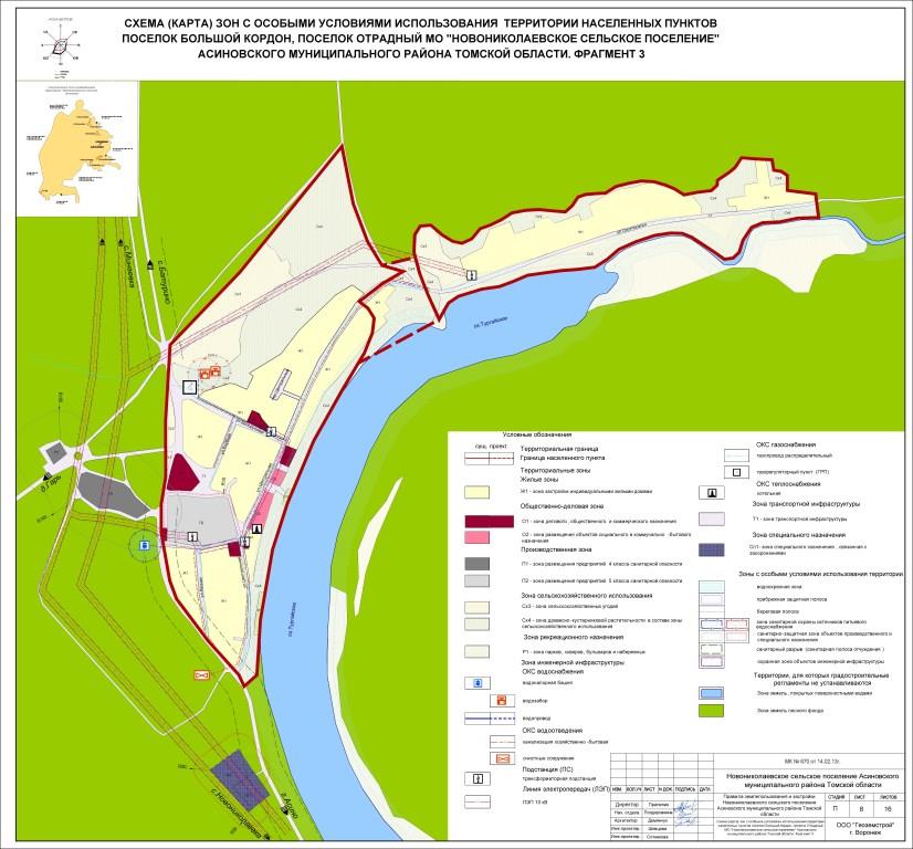 Схема зон с особыми условиями использования территории населенных пунктов поселок Большой кордон, поселок Отрадный МО «Новониколаевское сельское поселение» Асиновского района Томской области (jpg, 102 kb)